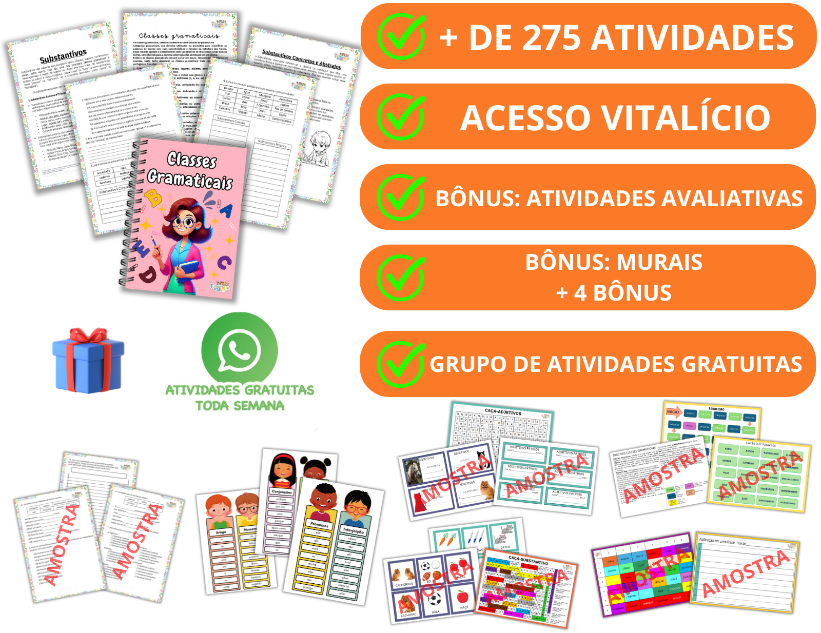São mais de 275 atividades + 6 Bônus exclusivos